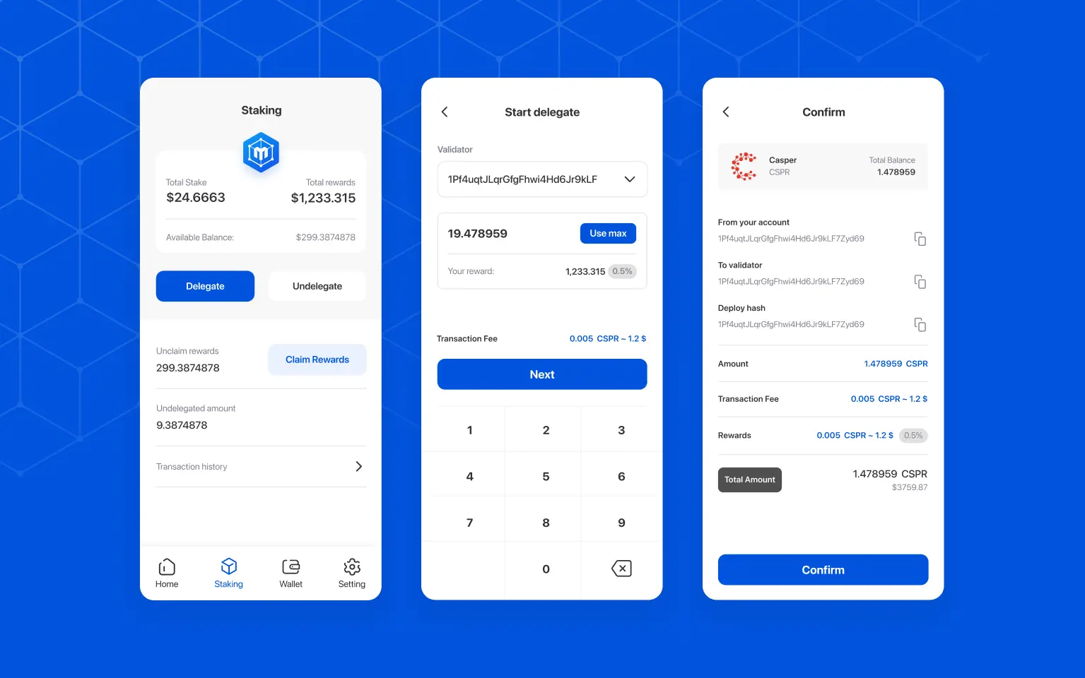 Megala Labs is a crypto wallet designed for professional users experienced in trading and staking. It supports tokens and collectibles as wallet assets, with a primary focus on fast transactions—sending, receiving, and staking directly from the wallet to other addresses or exchanges.